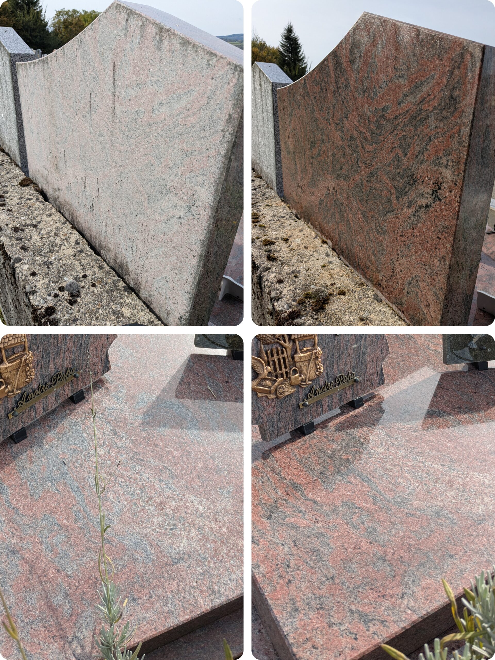 Les Pierres du Temps, spécialiste du nettoyage et de l’entretien de monuments funéraires et du souvenir, vous accompagne avec sérieux et bienveillance dans vos besoins. Que vous soyez un particulier, un professionnel ou une institution, nous vous garantissons un service respectueux, soigné, et adapté à vos attentes.