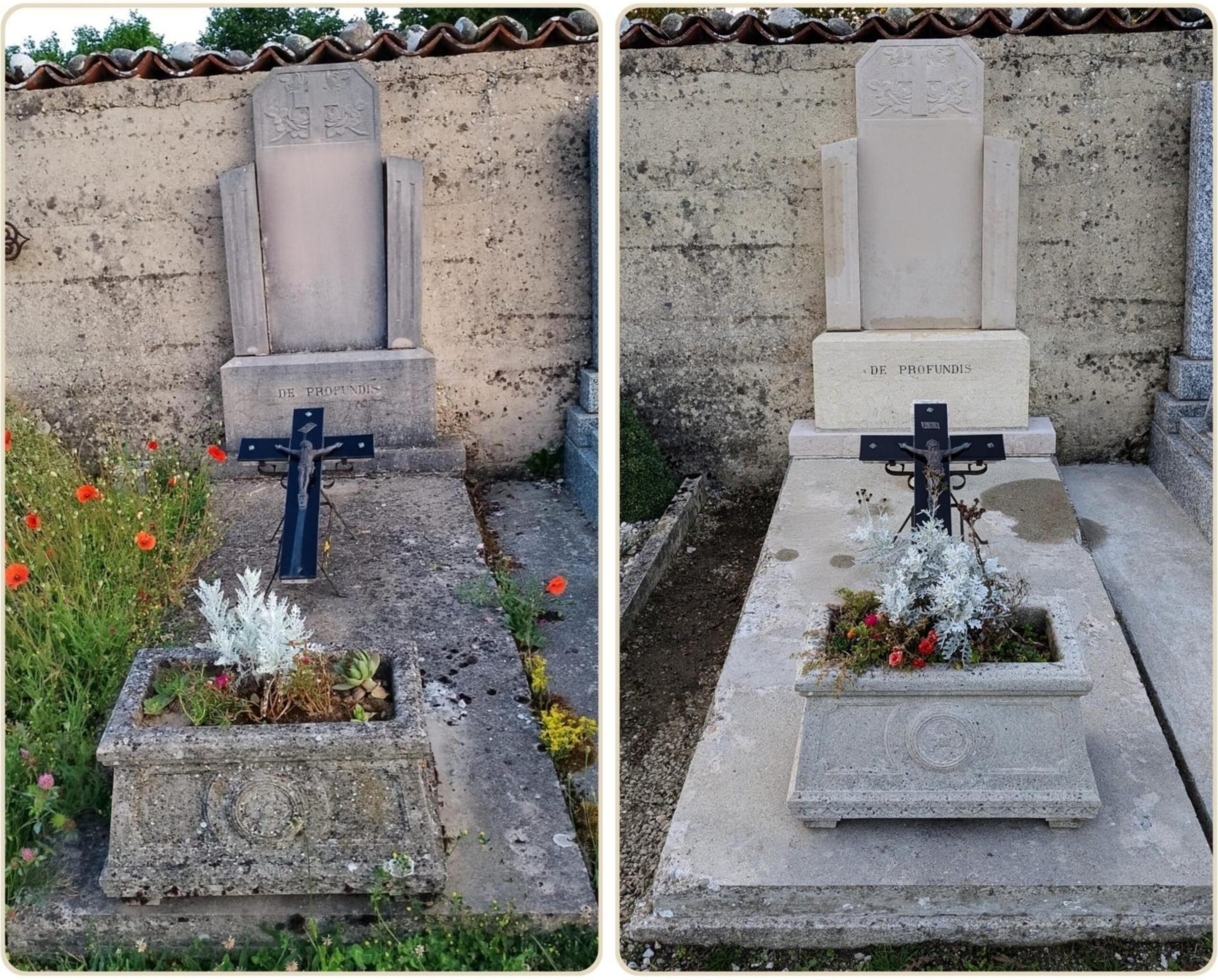 Désherbage des pourtours de la tombe